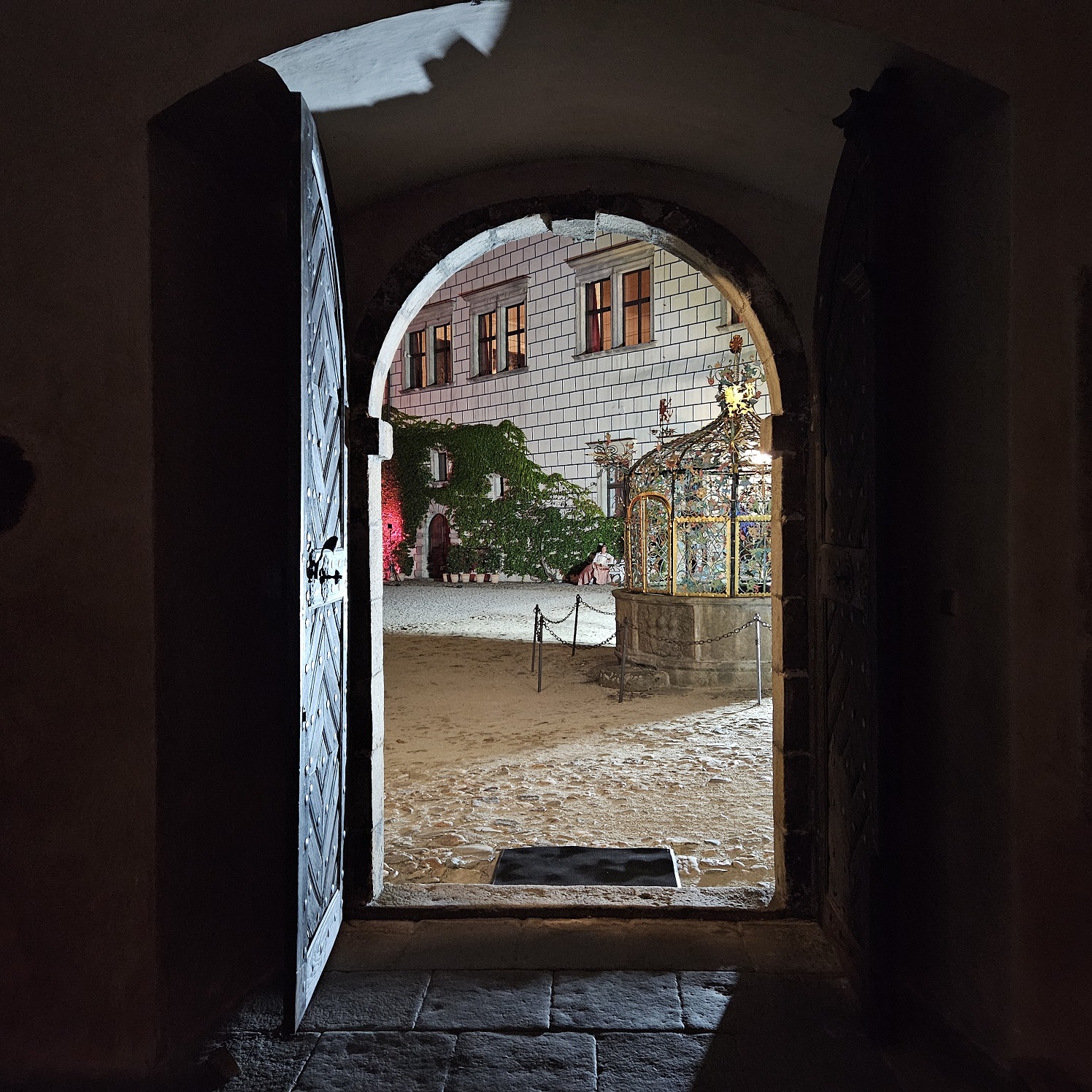 Volné nekomentované prohlídky zavedou návštěvníky do interiérů celkem tří středověkých věží jindřichohradeckého zámku. Prohlídky začnou v přízemí věže Menhartky, v níž se dosud nachází středověká černá kuchyně, následně vás zavedou k netypickým výhledům na město z terasy a interiéru pozdněgotické věže, tzv. Lázeňky, aby dále pokračovaly až do unikátníího prostoru tzv. Soudnice nad černou kuchyní a posléze vyvrcholily nočním výhledem na panorama města z terasy Černé věže.